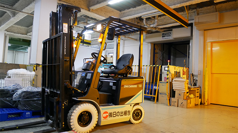 フォークリフト11台(本社/5台、白岡/2台、花田/2台、越谷/2台)、シュリンク2台、自動梱包機5台、帯掛機4台、ベルトコンベアー12台、員数機1台、アプリケーター式ホットメルト10台、結束機4台